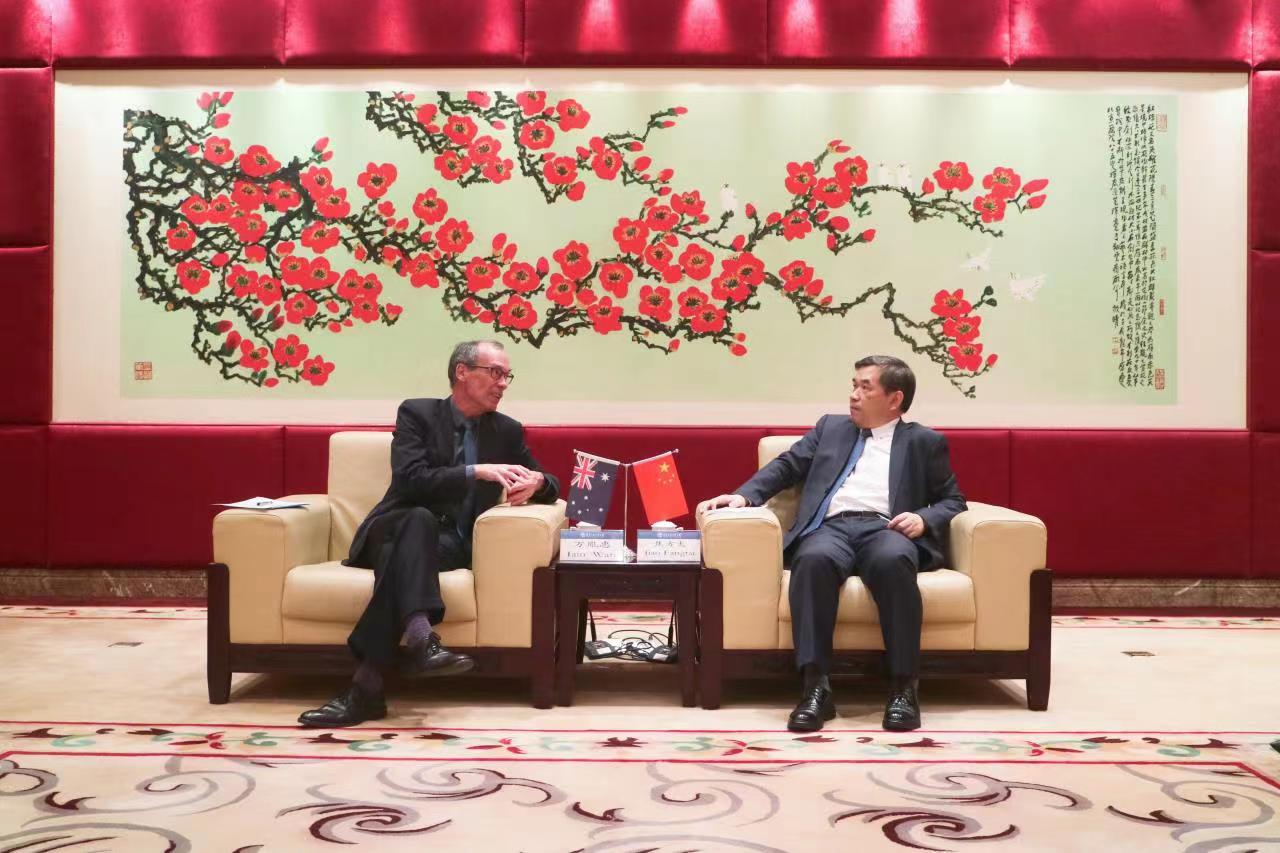 Baiyun Mountain Campus, Guangdong University of Foreign Studies, June 5 , 2023: On the afternoon of April 26, Iain Watt, Vice President of University of Technology Sydney, and his delegation visited GDUFS. Jiao Fangtai, Vice President of GDUFS, met the guests in the VIP Hall of the Administration Building of Baiyunshan Campus. The two sides exchanged views on personnel training and expanding cooperation.
