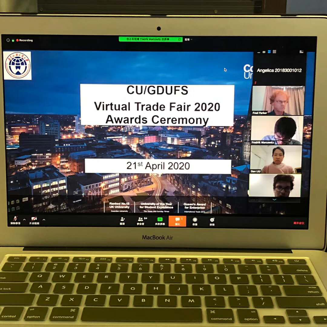 On 17thApril, the 4th annual Coventry University/International College, GDUFS Trade Fair took place. Originally planned as an exhibition with visiting lecturers, the event had to be changed and morphed into a ‘Virtual Trade Fair’. In the event Fred Parker, Fred Marcowitz and Dan Liu , Coventry University staff based at GDUFS, formed a panel with four other Coventry University lecturers that asked the students ‘company’ groups probing questions about their business ideas. Professor Sulanaya Sawang (Associate Dean, Global Engagement), Judy Finlay (Head of East Asian Strategic Relationship), Xin Tang and Yongying Zou (both part of the Academic Partnership Unit based in International College) also asked questions during the three–hour event. It was very well received by students who appreciated the questions from the panel which made them realise that they need to take a broader perspective when researching their company.