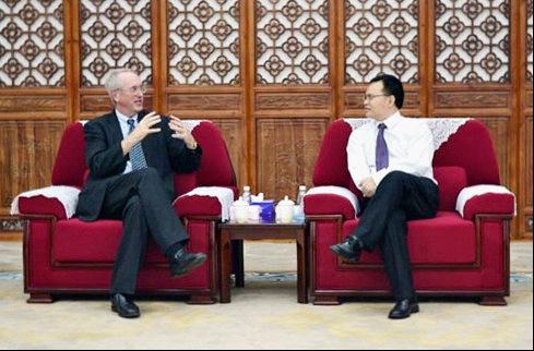 Mr. Liu and Mr. Goldbeck exchanging a cordial dialogue