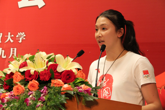 When talking about synchronized swimming, Luo said that this sport challenges the pinnacle of human achievement. They trained in the water for 10 or more hours everyday, which was very dull and boring. However, she believes in the saying "One minute of the audience, ten years of practice". Only through practice can an athlete succeed. Finally, she shared her desire to devote more to the undertaking of sports while enriching academic knowledge.