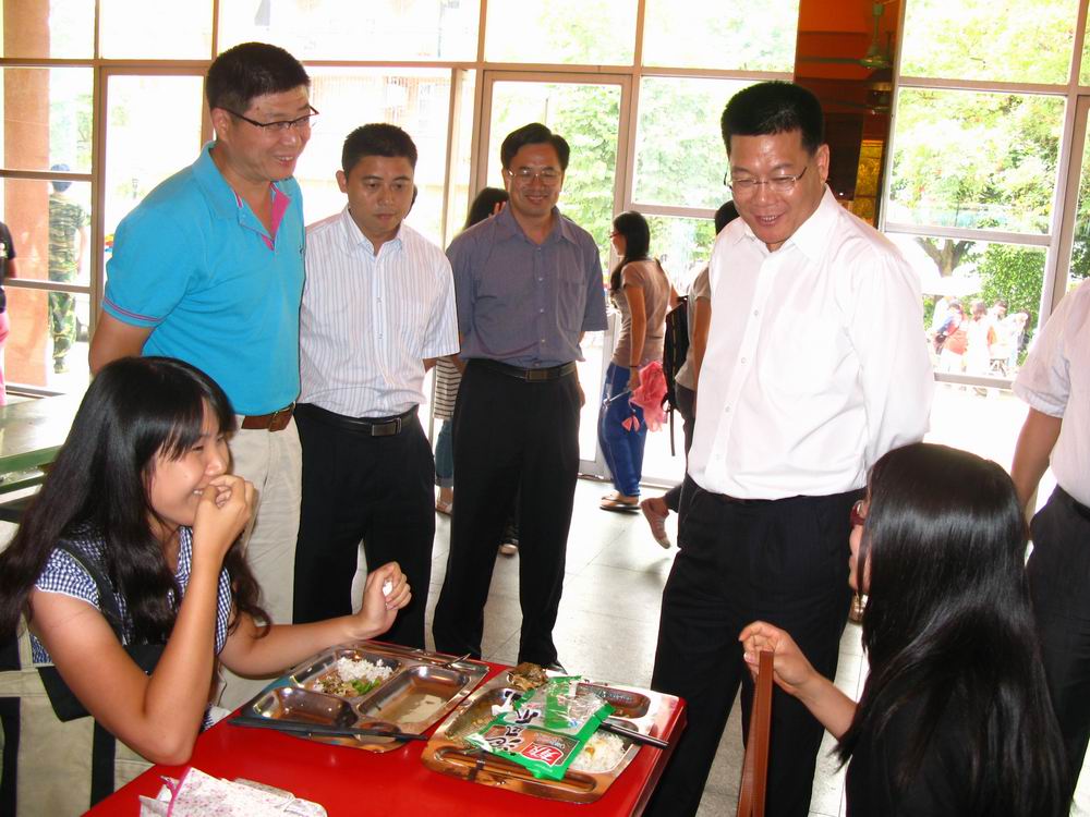 Later, President Zhong and his company had dinner at the Faculty Restaurant at Qing Ya Yuan. He considered that the Logistics Department has successfully renovated the canteens and that the supply mode, dinning environment and the variety of food in each canteen have all greatly improved.