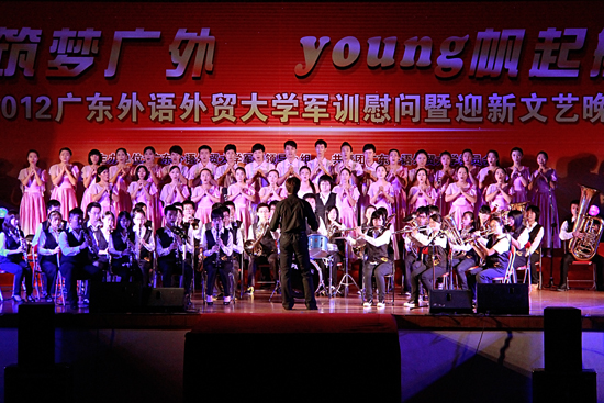 Oct 6th--The 2012 Freshmen Welcoming Gala was held on the north and south campuses on Sept 25th and Sept. 27th. Based on the theme of youth, the gala consisted of three different segments with different characteristics and fantastic performances. A large band of performers formed by students from different departments, including international students, prepared a multicultural visual feast for the newcomers to GDUFS.