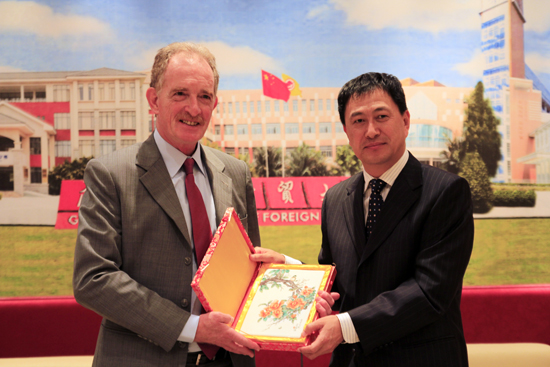 Also In The News--Party Secretary Sui Guangjun greeted Mr. Benedetti and Mr. Brennan on the morning of November 20th and introduced the history as well as the latest developments of GDUFS. Sui voiced the wish of further cooperation with EU in training qualified interpreters.