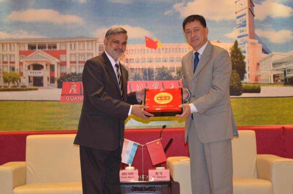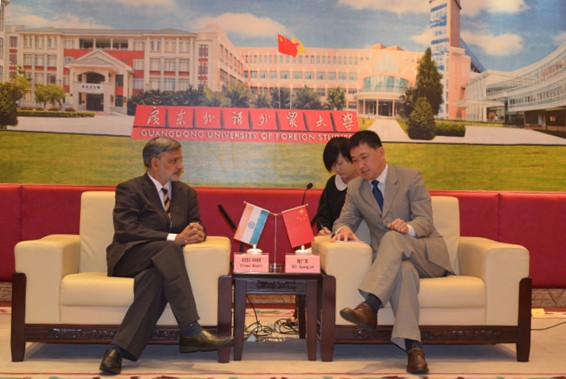 Professor Chintamani gave an introduction of Jawaharlal Nehru University, specifically the Faculty of International Relations. He stated that as the inevitable globalized cooperation has been effective for the development of economies, the lack of information and communication will cause problems. Therefore, China and India should maintain close contact in order to break through the impediments along the way. The professor also suggested that Jawaharlal Nehru University develop closer contact with Guangdong Institute of International Strategic Studies and GDUFS and he himself would devote his efforts in the cooperation with the Institute and GDUFS, for which Scretary Sui expressed sincere appreciation..
