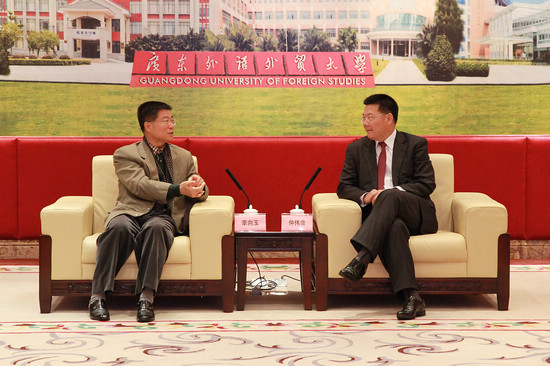 Dec 19th--The Dean of Macao Polytechnic Institute, Li Xiangyu, along with a delegation revisited GDUFS to discuss matters related to the cooperation between our schools. President Zhong Weihe and the other school leaders extended a warm welcome to the guests at the Administration Building on the north campus.