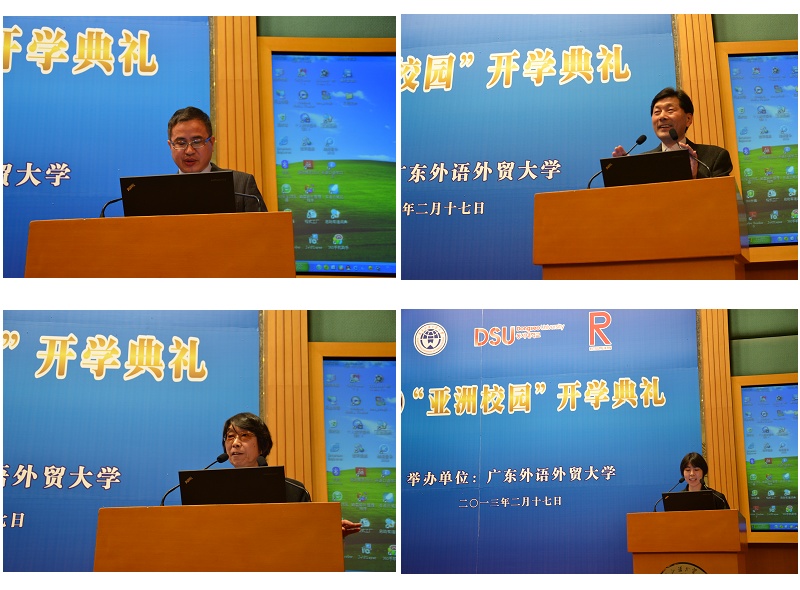 Mar.1st The opening ceremony of the mobile curriculum for the project "Asian Colleges" was held at GDUFS on Feb. 17th. the Vice President of GDUFS Fang Fanquan, Dean Duoyou from the faculty of Asian Language and Culture, and delegates from Japan as well as Korea attended the opening ceremony.