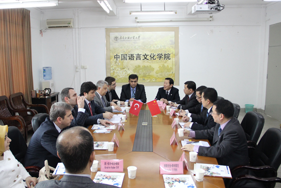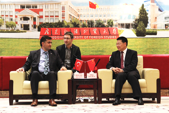 President Zhong stated that, as a university featuring international studies, GDUFS has already set up cooperation projects with over 230 foreign universities. He said the GDUFS is looking forward to more cooperative opportunities with universities in Turkey in terms of establishing Chinese Language Schools, student exchange and linguistic research, which are not only beneficial to the universities involved, but also to the development of two regions. Mr. Serdar Kalaycı extended his gratitude for the gracious welcome he received and looks forward to furthering the cooperation project.
