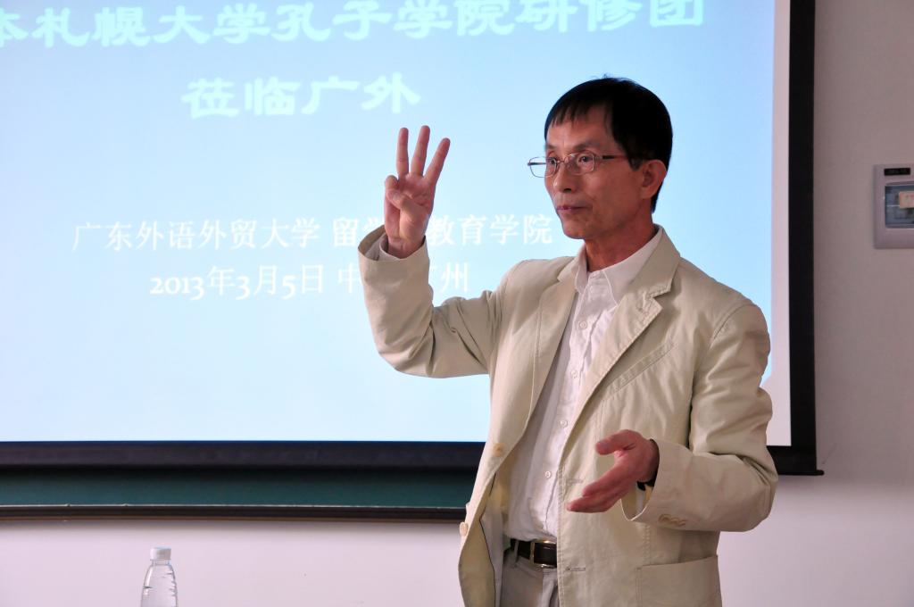 The delegation from Japan was warmly received by Dean Liang Xuehong from the International Education Institute. Since 2006, the Confucius Institute of Sapporo University has made six visits the GDUFS and has a sent a total of 110 students to our university. Liang said that through the joint efforts of the two universities, the Confucius Institute in Sapporo has achieved significant success and played a positive role in promoting non-governmental exchange between the two schools.