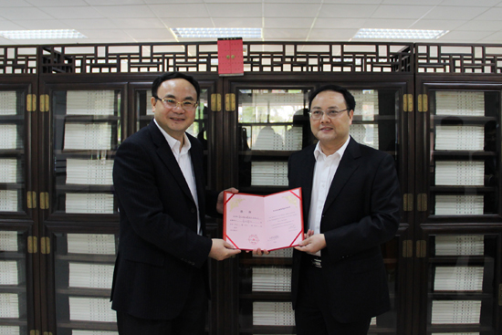 Part Secretary Sui presenting the certificate to Dr. Wang