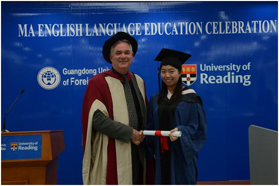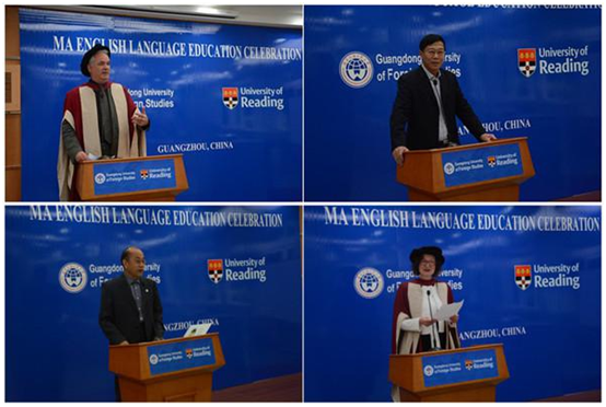 In his address Professor Andy Goodwyn pointed out that the two universities, GDUFS and the University of Reading, had overcome numerous difficulties to cooperate and establish the MA in the English Language project, crossing the distance between the two continents numerous times and in myriad ways. Both sides are engaging in cultivating international elites, providing students with international education opportunities, so that they could obtain knowledge of their major, enhancing their competence, thus the education and knowledge could shine as a torch throughout their lives.