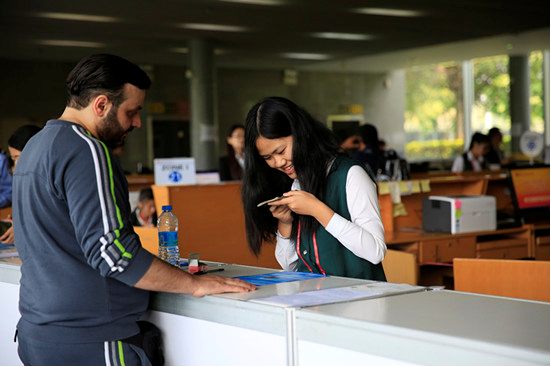 Volunteers at the Cards Issuing Counter answering foreign merchants’ questions in detail