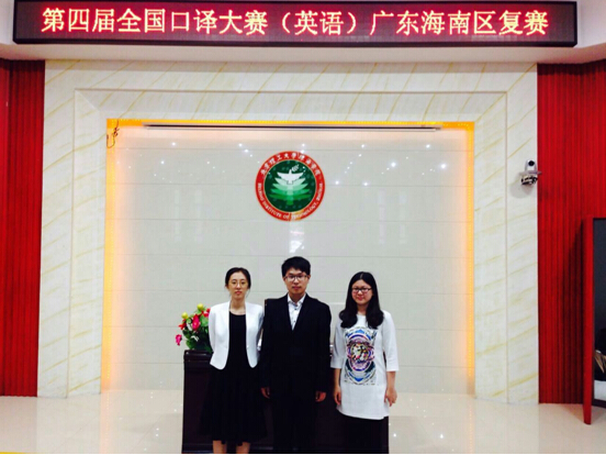 On 25th April, the 4th National Interpretation Contest in the Guangdong-Hainan District concluded in Zhuhai, the southernmost city of Guangdong province. Over 50 competitors from 16 universities of Guangdong and Hainan Provinces took part in this Contest. Three competitors from the School of Interpreting and Translation Studies represented GDUFS. YANG Bo won the first place and another two students HE Ting and WU Xinyue were qualified to next stage of the context.