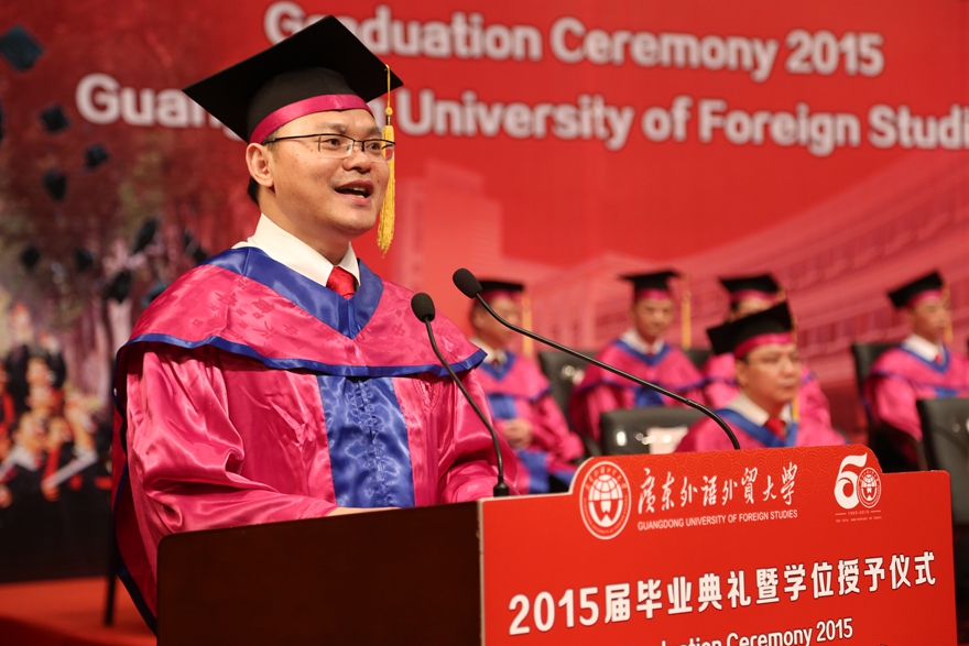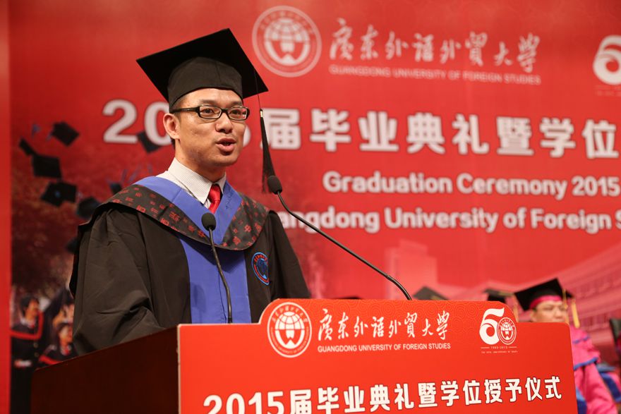 Wei PAN, a parent representative from the School of English for International Business, on behalf of all the parents, expressed gratitude and respect to GDUFS’s officials and teachers. He thanked GDUFS for its combining professional knowledge and practical activities. He said it was GDUFS that made students grow into mature adults. He hoped that wherever they were, the graduates should keep the school motto in mind.