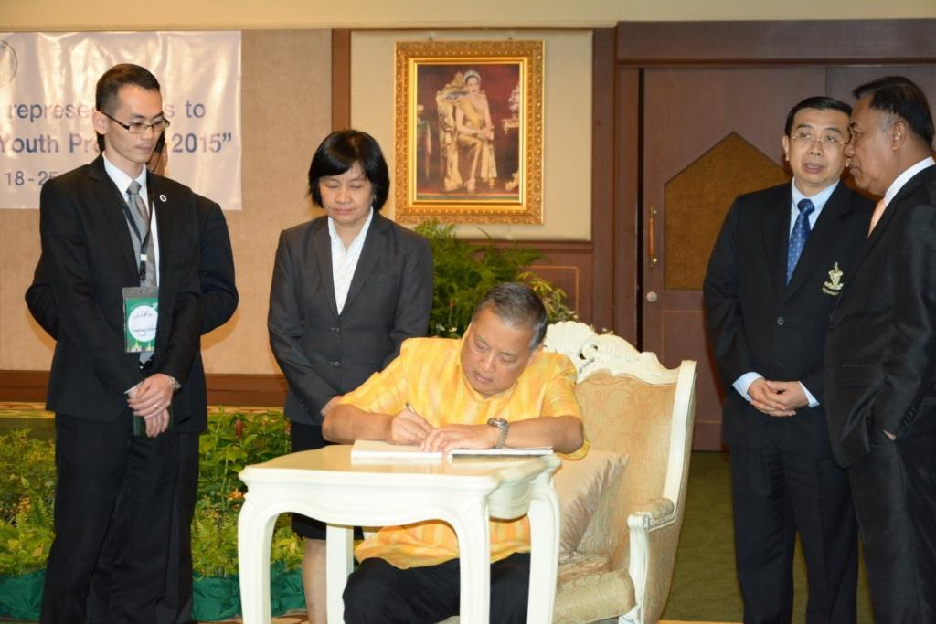 On 18th June, Prince Sukhumbhand Paribatra, mayor of Bangkok, met the youth the ceremony. He expressed his cordial welcome to them and hoped that, through this activity, they could have a better understanding of Thailand. After learning about the oncoming 50th anniversary of GDUFS, he wrote a greeting in the GDUFS guest book on behalf of the peoples of Bangkok and government. Moreover, he noted that he looks forward to greater cooperation between Guangzhou and Bangkok in the future.