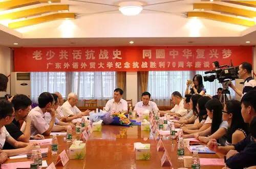 On September 3rd, the grand military parade for the 70th anniversary of the end of Chinese People’s War of Resistance against Japanese Aggression and the Global War Against Fascism was celebrated at Tiananmen Square to engrave the history and cherish the memory of our revolutionary martyrs, The event is to help people cherish peace and initiate a bright future. Too, a symposium named as Discussing the History of Resistance against Japanese Aggression to Realize the Dream of Rejuvenation of the Chinese Nation was held at the Second Conference Room in GDUFS. At the symposium, two heroes, YANG Qun and LIN Tao, and old comrades from the Working Committee for Caring about Next Generations, were invited to share their experience of resistance against Japanese aggression to the present teachers and students. Others who attended the symposium were SUI Guangjun, Party Secretary of GDUFS, LIU Haichun, Vice-Presient, leaders from the Publicity Department of the School Party, the Students Department, the School League Committee, the Employment Guidance Center and the Management Office of the Retirees and some student representatives. The symposium was hosted by SU Yi, Deputy Secretary of the School League Committee.