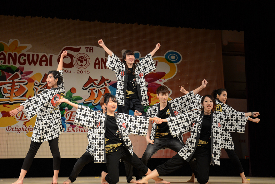 Japanese students performed Yosakoi and Soran-Bushi, which were often danced by Japanese fishermen. Dressed in Japanese style clothes, students shouted chants and danced as there were trawling. Chinese culture was also represented on the stage. Legend of Loong, performed by Guangmaoyuan, mixed several kinds of Chinese martial arts including Taiji and Wu. Some audience even whistled due to their wonderful performance.