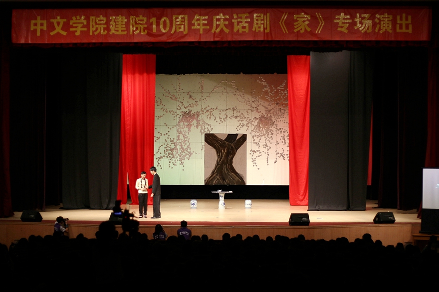 The drama was an adaption of CAO Yu’s script and BA Jin’s novel of the same name. It mainly tells the tragic love stories of two young couples, criticizing the disadvantages of their feudal families and conventional Chinese marriage. The drama also sang high praise of young people’s courage of pursuing their true love and happiness. The excellent performance of the actors and actresses, the delicate and melancholic background music and the elegant layout of the stage made up a splendid cultural feast for the audience.