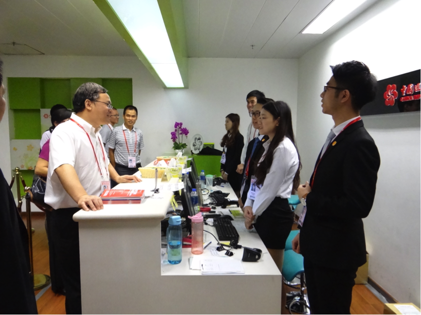 Afterwards, LIU Jianda, accompanied by CHEN Shaowei, paid their visits to the VIP room, reception desk and so on. They conveyed their greetings to the interns and encouraged them to finish the work with high efficiency and professional skills, which represented the spirits of students at GDUFS.