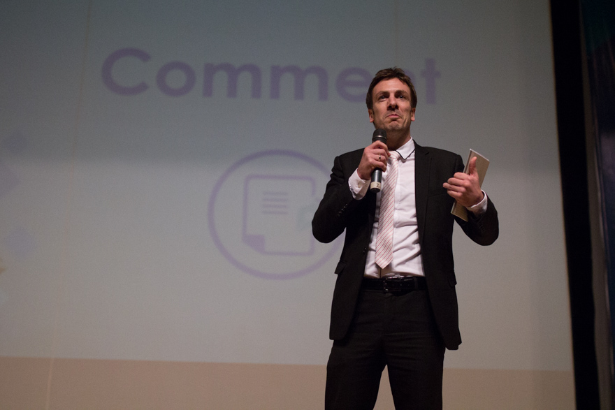 The hosts announcing the beginning of the contest