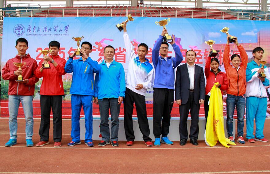 After the award ceremony, students and teachers from different universities were still very excited. They raised their university flags and trophies to show their happiness. A senior of GDUFS said, “You can’t imagine that all of us hadn’t practiced together before. When we heard we won the 400-meter relay race, we couldn’t believe we made it.” When asked about the feeling of taking part in the races at GDUFS, a student from South China University of Technology said that what impressed him most was its ability of organizing big events. “The staff were efficient.” He praised.