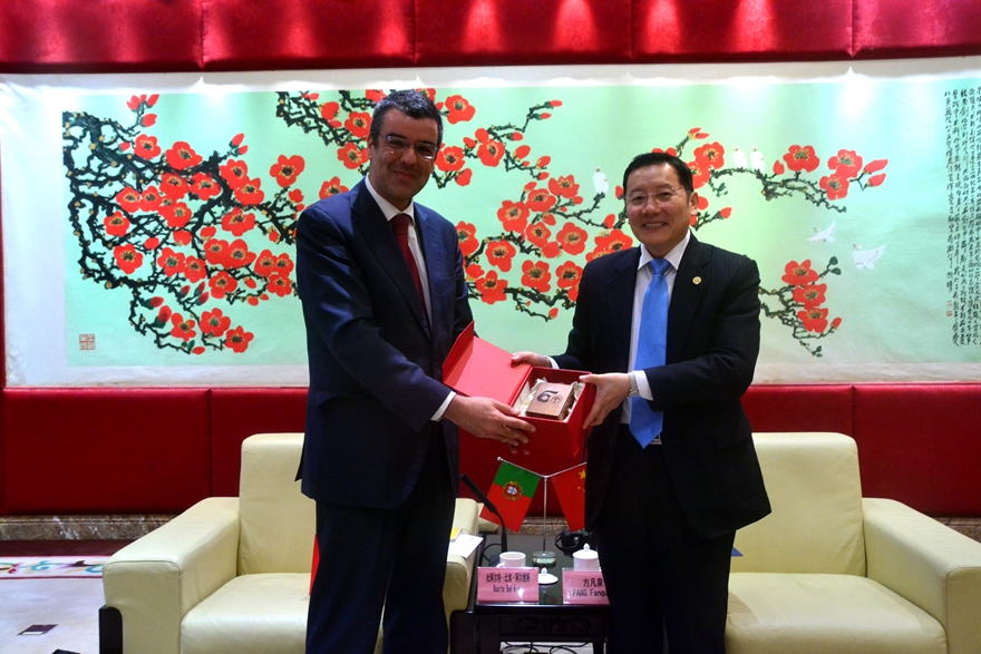 Vice President Fang Fanquan introduced GDUFS briefly to Dr. Alves and explained the teaching of Portuguese at GDUFS. In 2007, the Portuguese major was established and in 2009, the major began to recruit students. There are 20 students every year and 7 qualified professors (including two Portuguese teachers). The Faculty of European Languages and Cultures has cooperated with a lot of famous foreign universities such as University of Lisbon in Portugal, University of Macau and University of Sao Paulo in Brazil. He also mentioned that the graduates of the Portuguese major have a high employment rate in recent years as well.
