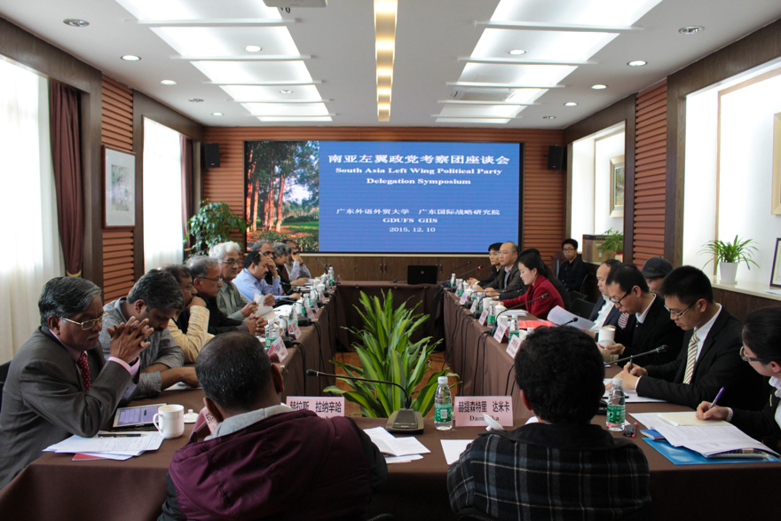 On December 10th 2015, South Asia Left Wing Political Party Delegation Symposium was held in Meeting Room 304 in the Guangdong Research Institute for International Studies. Attendees were officials from the International Liaison Department of the Central Committee of the CPC; officials from the Provincial Foreign Affairs Office; South Asia Left Wing Political Party Delegation and scholars from GDUFS.