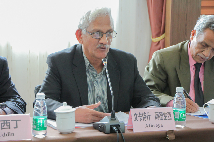 Also, Athreya, the head of the delegation, delivered a speech to the present. First of all, he congratulated GDUFS on the 50th anniversary and expressed his sincere thanks for treating the delegation with the utmost cordiality, anticipating the speech of the specialists and hoping that they could acquire satisfied answers from interaction between both sides. In addition, Athreya introduced other attendees from South Asia.