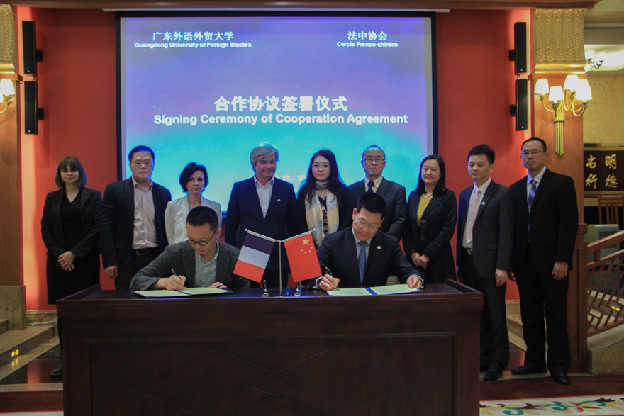 On 29th March, the Signing Ceremony of the Cooperation Agreement between Cercle Frenco-Chinois and GDUFS was held in the VIP Hall, Administrative Building. President ZHONG Weihe attended the ceremony and warmly welcomed the delegation from Cercle Frenco-Chinois. Other attendees were Prof. CAI Hong, the Director of the International Office; Mr. YI Zongyong, the Deputy Director of the International Office; Mr. ZHANG Jianwu, the Vice Dean of the Trade and Economics School; Ms. LIANG Jie, the Vice Dean of the Business School and Mr. YU Zehao, the Deputy Director of the Employment Guidance Center.