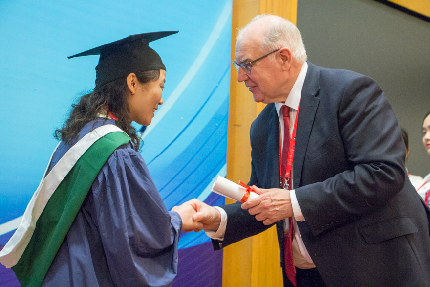 At the end of the ceremony, Sir Alan awarded the graduation certifications to all graduates and a moment full of joy was captured in a group photo.