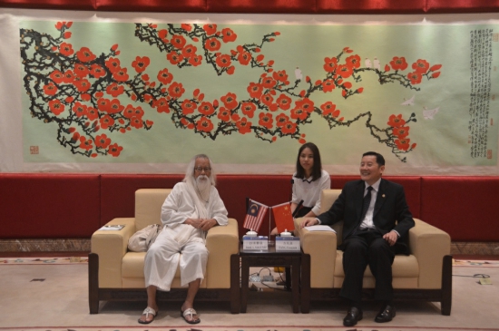 At the beginning of the meeting, FANG Fanquan showed a great welcome and gratitude to A. Samad Said for authorizing GDUFS to undertake the translation of his novel. Then A. Samad Said expressed his appreciation for the cordial hospitality GUDFS accorded them. He stated his wishes that he could make contributions to improve the relationship between China and Malaysia.