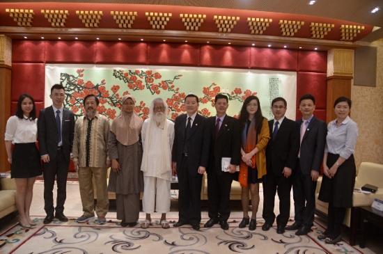 On the morning of 13th April, A. Samad Said, a celebrated Malaysian novelist and poet, visited GDUFS together with his wife Rashidah Binti MD Dahan and Chan Yong Sin,President of the Association of Translation and Creative Writings in Malaysia. At the meeting with GDUFS delegations, A. Samad Said authorized the translation work of his novel Di Hadapan Pulau to TAN Xiao, the Head of the Malay Language Department of GDUFS.