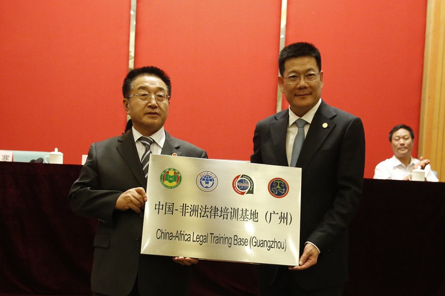 After that, ZHANG, on behalf of the Law Society of China, delivered two Name Boards to ZHONG as the symbols of the foundation of two centers in the university—respectively China-Africa Law Study Center (Guangzhou) and China-Africa Law Training Center (Guangzhou).