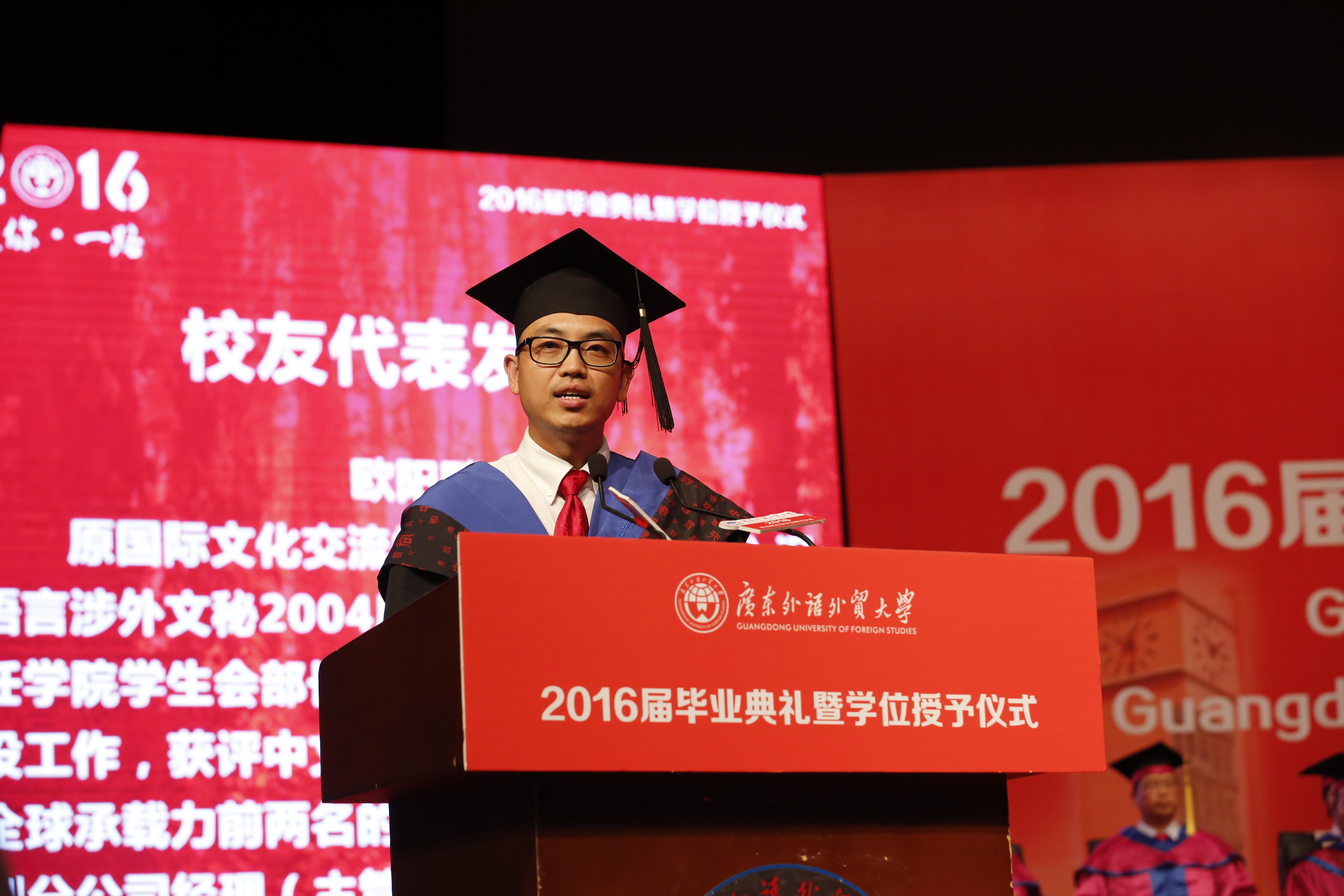 President ZHONG Weihe opened the ceremony by delivering an inspiring speech. He recalled the graduates’ happiness and bitterness during their four years at GDUFS, and he also urged the students to always appreciate the company of parents, the edification of teachers and the friendship of schoolmates.