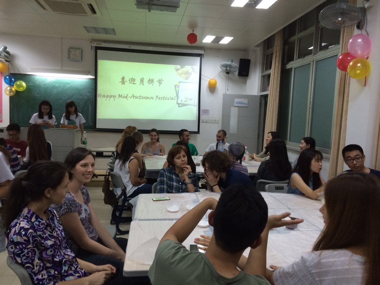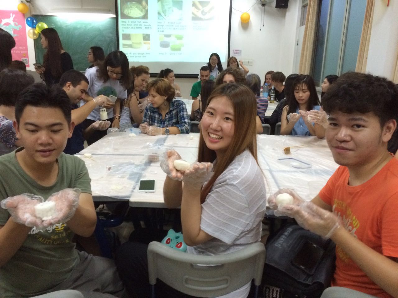 Foreign Students sat in four groups, with their cheerful chatting accompanied by traditional Chinese music filling the illuminated classroom in the 7th Building on the North Campus. It was the eve of the Mid-Autumn Festival, September 14th, and they were participating in the Mooncake Making Party organized by the Global Society.