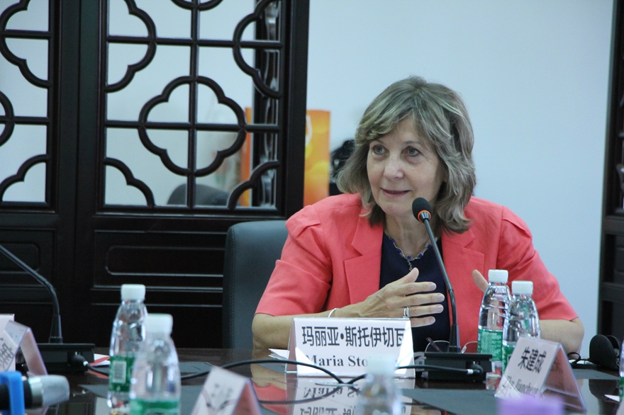 In her speech, Professor Maria Stoicheva broke the ice by sharing the feelings they had when they came to China. She said that they didn't know each other until Prof. WANG Xiaohai, Research Fellow of Guangdong Guangdong Institute for International Strategies and other people came to help. That was how they found each other. And she expressed her pleasure to attend the seminar. She attached great significance to the seminar and she said that she was happy about the contributions the seminar would make.