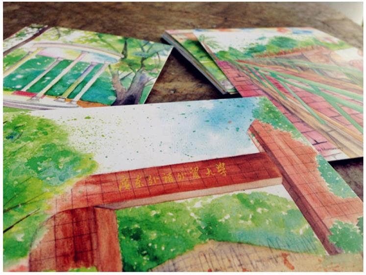 The team primarily designs souvenirs of GDUFS, including postcards, Guangzhou Transportation Cards, T-shirts, badges and straps, which are popular among students.