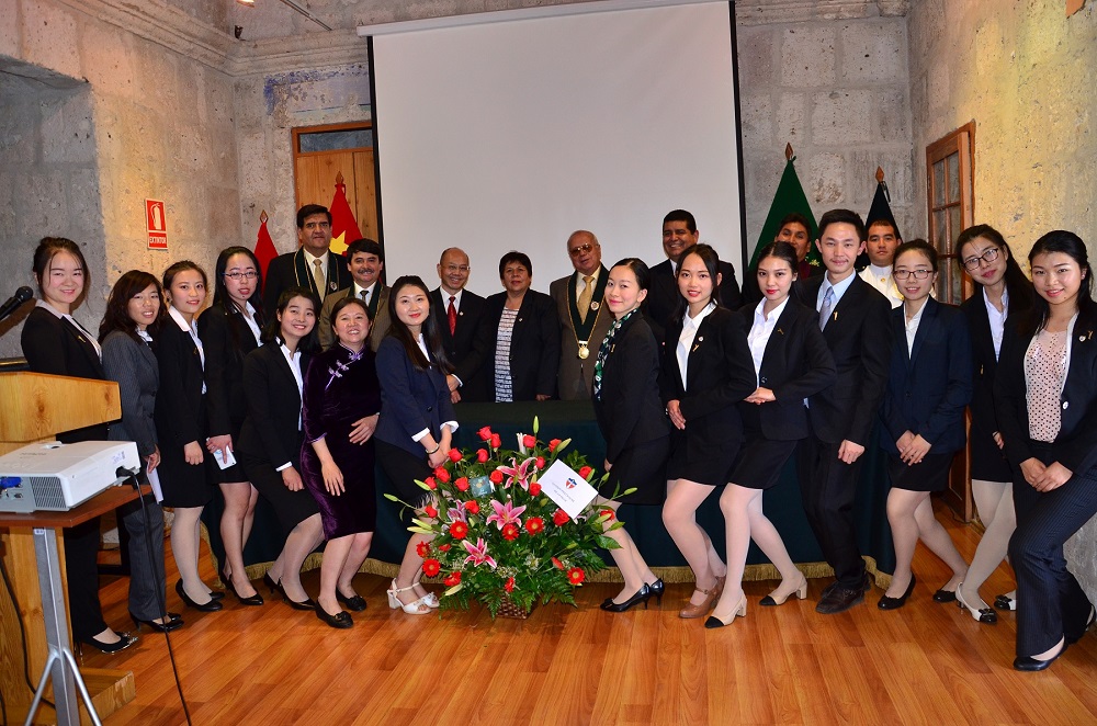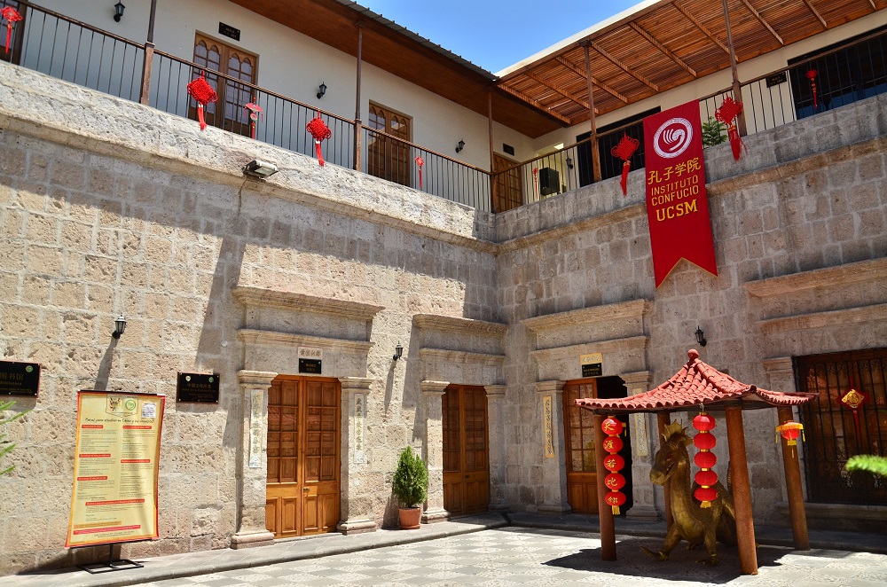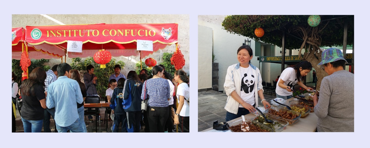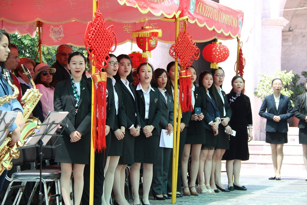 On September 30th local time, The Confucius Institute of Universidad Catolica de Santa Maria, Arequipa Peru held a series of Chinese culture activities to celebrate the 67th Chinese National Day and the third Global Confucius Institute Day. The military representative of Arequipa, the president and vice-president of the university, dean of each faculty, president of the cooperative middle school, previous foreign deans of the Confucius Institute, teachers and students of the Confucius Institute together with some citizens, attended this activity. In total, they numbered well over one hundred.