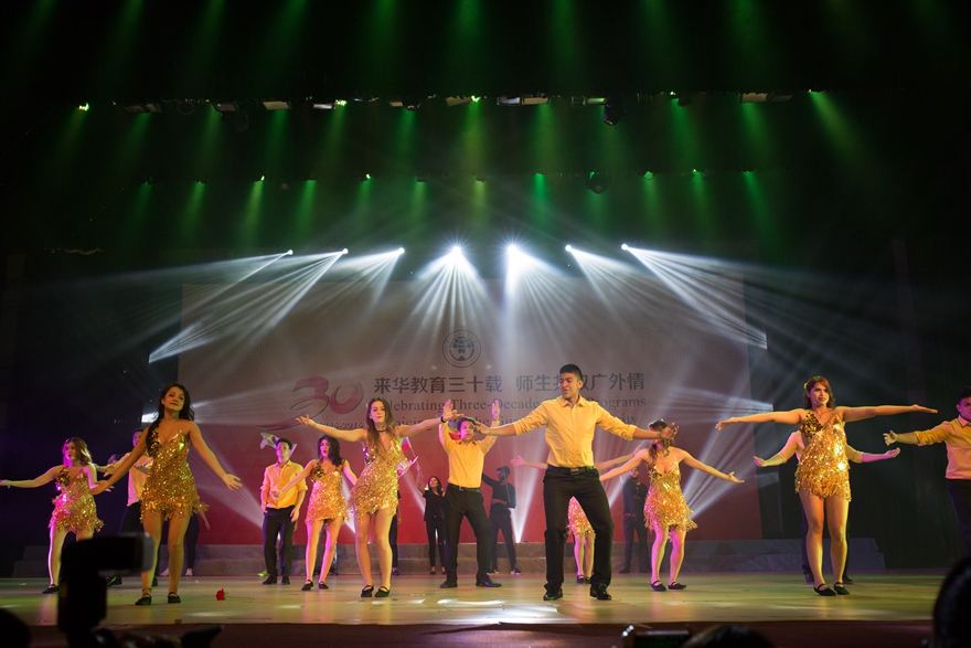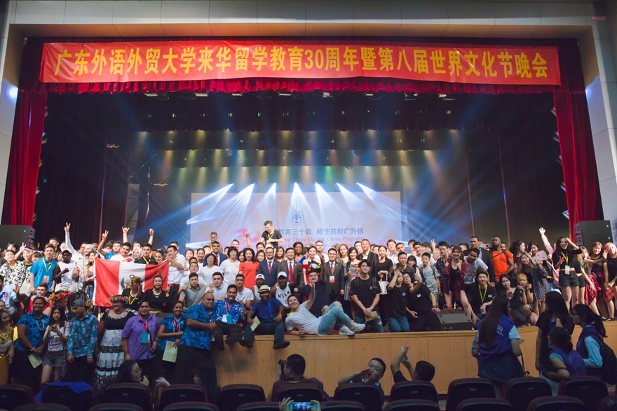 October 29th, 2016 will be remembered as a day with sensational events, as the Celebration of the 30th Anniversary of GDUFS Programs for International Students & 8th World Culture Festival Evening Gala was held in Yunshan Hall on the North Campus. With the theme of “Celebrating Three-Decade China Programs, rejoicing with the Guangwai Community”, teachers and students from all over the globe acted as versatile artists, presenting the audience with a fabulous audio-visual feast.
