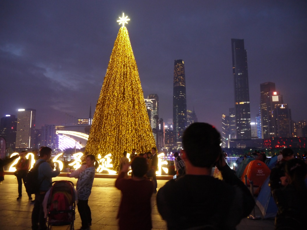 Before the Christmas tree was lit, traditional Christmas songs and carols were well-performed by Canton Tower Choir. “Jingle bells, jingle bells, jingle all the way…” performers in bright blue gowns, with lyrics in their hands were introduced to warm applause. The audience in front of the stage all sang along together. All of a sudden, it looked as if it was Christmas Eve, and everyone was making the most sincere wish. The Christmas tree opposite the stage was then lit up, warming the sightseeing platform. “What a wonderful and warm performance!” Tina, an 11- year-old girl said.