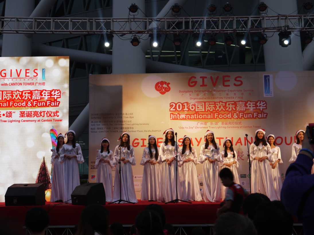 On December 3rd 2016, at Canton Tower, the 2016 International Food & Fun Fair, as well as the “Ode to Joy” Christmas Tree Lighting Ceremony, were held by GIVES and Canton Tower. On entering the outdoor plaza, live bands and dancing shows, stalls of international food and drinks attracted people from various countries. The leading role - the huge and well-decorated Christmas tree - was standing grandly by the Zhujiang River, waiting for its moment to be lit. Around it were the tent blocks where families and groups of friends were allowed to pitch their tents and enjoy the shining stars and the marvelous night. What’s more, all proceeds of the activity would go to support Autism research & relief in China and Music therapy programs.