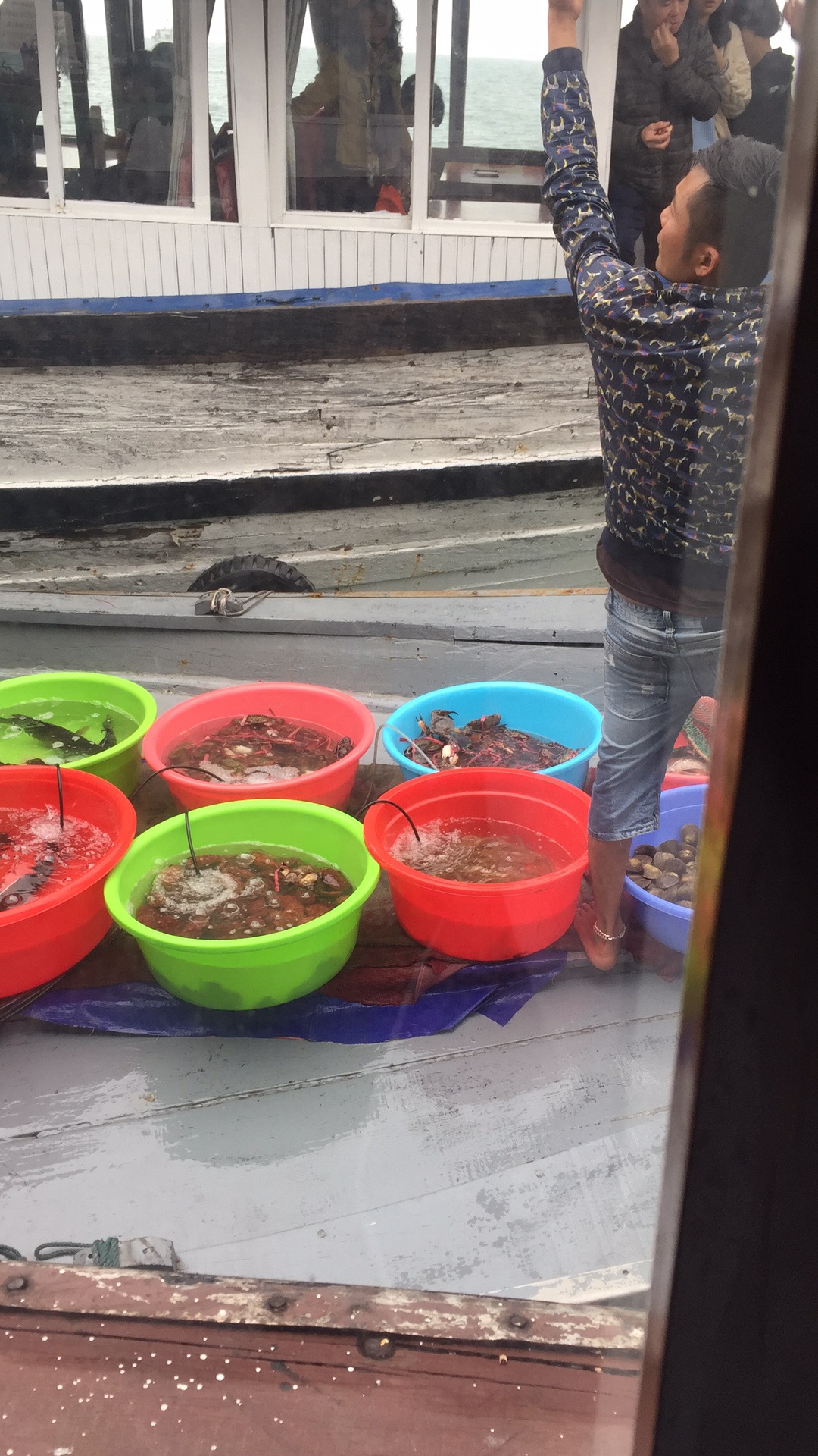 Pedlers sell seafood by the boats