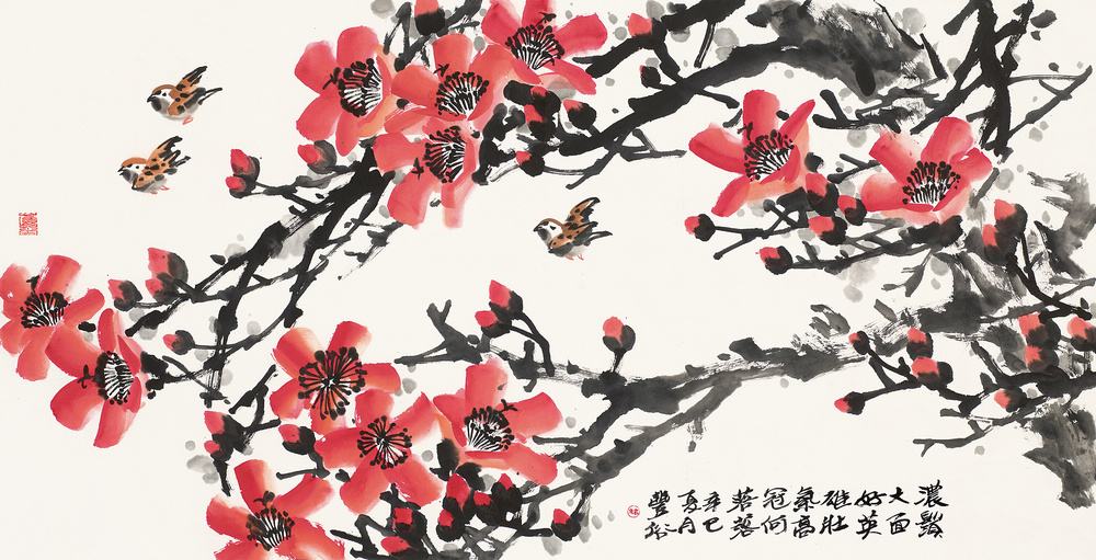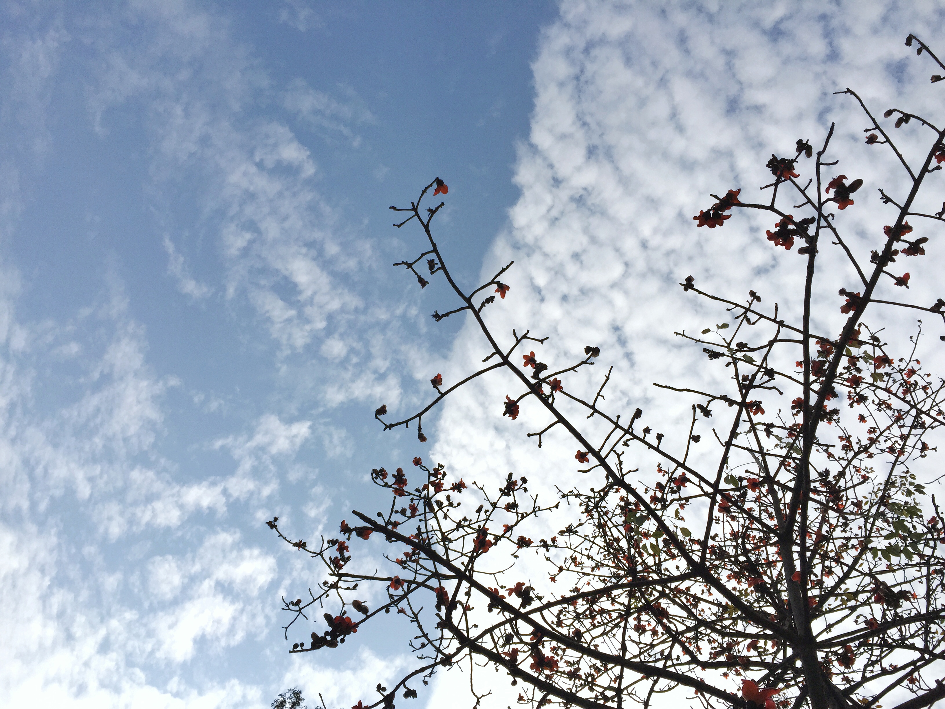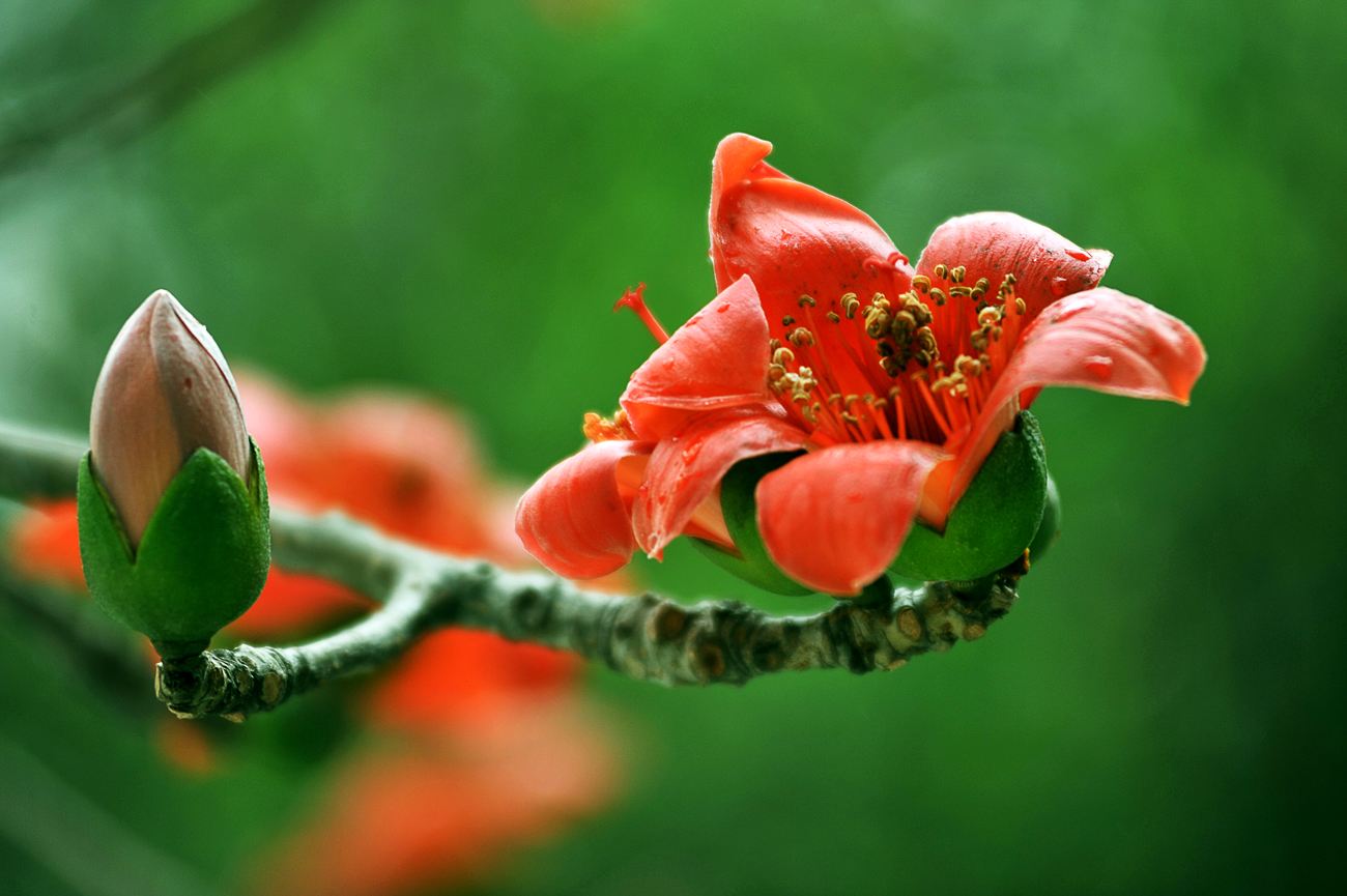 A splash of scarlet appeared in my dream like a huge fire giving off light and heat radiantly. “What is it that is so powerfully fascinating?” I murmured in search of that admiration-provoking vague figure.I walked and walked heading towardsthat towering icon and finally when I reached it, I was surprised at the scene lying before me where kapok flowers dotted the ground dying the ground blood red.With regret and sympathy,I bent down,carefully picked up one flower and gazed at it. What a lovely thing it must have been, hanging high on the branches swinging in the air.Now after a storm of heavy rain and high wind, they fell off from branchesand lay on the ground,but they kept their heads up.O,that haunting object turnedout to be a kapok tree. Of course,it has always been kapok. Softly and gently I put down the flower I picked up and left the serenity – not wanting to disturb them in my dream wonderland.