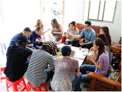 International students dine in a peasant's house