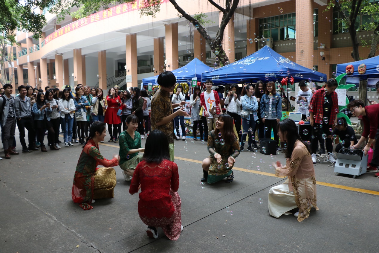 “We’ve made every endeavor to prepare for today’s Asian Flavour Street”, said Avaning, a student majoring in Bahasa Melayu. “We asked our Malaysian teacher and her friend to teach us how to make traditional Malaysian cuisine. In the meantime, we prepared the costumes and practiced Malaysian songs over and over again.” Avaning also said that they learned a lot through the whole process and that they had a better understanding of “no sweet without sweat”.