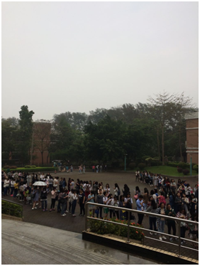 It was barely 17:30 on April 25th, and some students had already arrived outside Yunshan Hall, with something to fill their stomach and some friends to spend the finest hours. The air was chilly, and the sky gloomy, but their hearts were bright and merry. Their eyes beamed when talking about the play – Twelfth Night – which was to be performed by the UK’s TNT Theatre at 19:00 in the Hall.