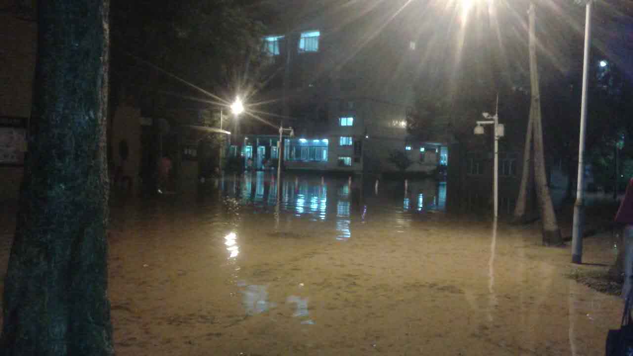 A picture of Laughing fearlessly through the rain of a dorm in No.7 dorm building was a hit on the Internet last night, which was a little relief to the panic-stricken students. “The water was rising to the bed and there were things out of our strength. So we just stopped to take a couple of photos instead. We never thought it would be hot like that, but memorable the pictures really were.” Student ZENG from No.11 dorm building said they were free of immersion because of their high-lying position, but they were not free of business and offered a hand to help as much as they could.