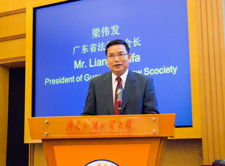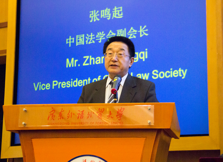 Present at the ceremony were ZHANG Mingqi, Vice President of China Law Society; LIANG Weifa, President of Guangdong Province Law Society; LIANG Debiao, Vice President of Guangdong Province Law Society; CHEN Ruiguang, Full-time Vice President of Guangdong Province Law Society; SUI Guangjun, Secretary of the CPC Committee of GDUFS and President of GDUFS, and Oloko Shakirudeen Adewale, Consul General of the Federal Republic of Nigeria in Guangzhou. The host was HU Chonghan, Dean of the School of Legal Studies.