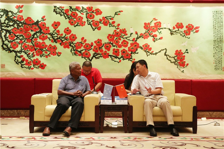 SUI extended the warmest welcome to the delegations and introduced to them in detail the history and development of our university. Both parties conducted an in-depth discussion on various topics, including scientific research. Tony Ganngiyan said that he had been briefed about GDUFS even though it was the first time for him to come here, because two of the officials had attended GDUFS's courses for the youth leaders from the Pacific countries. He added that he is fully supportive of the Pacific-island related research of GDUFS and he hoped we can render them support in Chinese-language teaching in return.