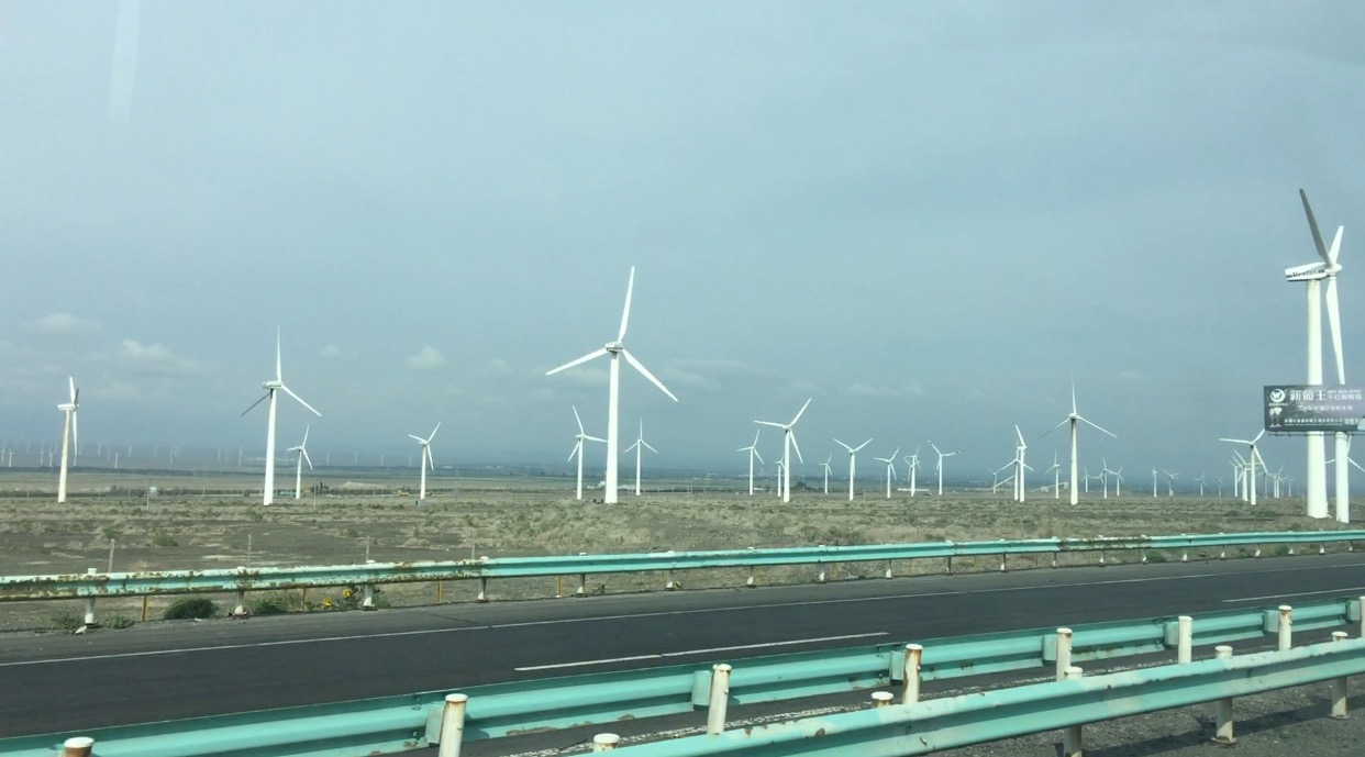 At the beginning of my journey, I was speeding along the roads between mountains, which are covered by desert. The soil here is of poor condition, resulting from the dry climate. Therefore, desert covers a wide area here, which differs from the southern China. In the desert, there is almost no green but only grey and brown. Sometimes, you can see some plants struggling in the strong wind, but they are also very weak and struggle to survive. However, a unique scenery can be seen on this barren land – hundreds of wind turbines standing in the desert. This was my first time to see the wind power generation stations. The wind in Xinjiang is strong enough to overturn cars, kill the plants or even blow away people. But at the same time, it means an abundant wind energy. These wind turbines standing in the desert generate huge energy and transmit it to other provinces, supporting the electricity supply of the whole country, kindling a hope on the barren land.