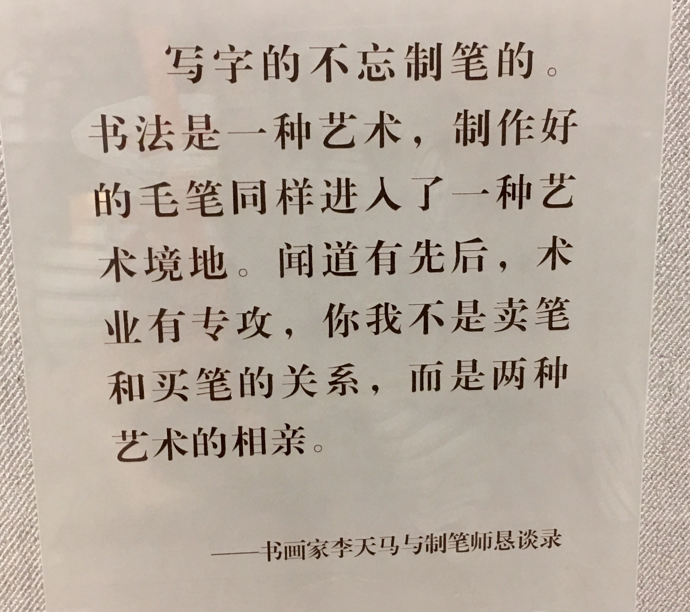 Last but not least, I'd like to mention a free-of-charge exhibition that I came across at some corner of Fuzhou Road to wrap up this journal. The display was on the calligraphy of traditional Chinese characters and the history and making of ink and brush pens. I did learn something related that I'd never embarked on before, like what ink is and how ink is made. But I in fact want to quote a sentence displayed inside the exhibition room from Li Tianma, a Chinese calligrapher. Here's my rough translation: